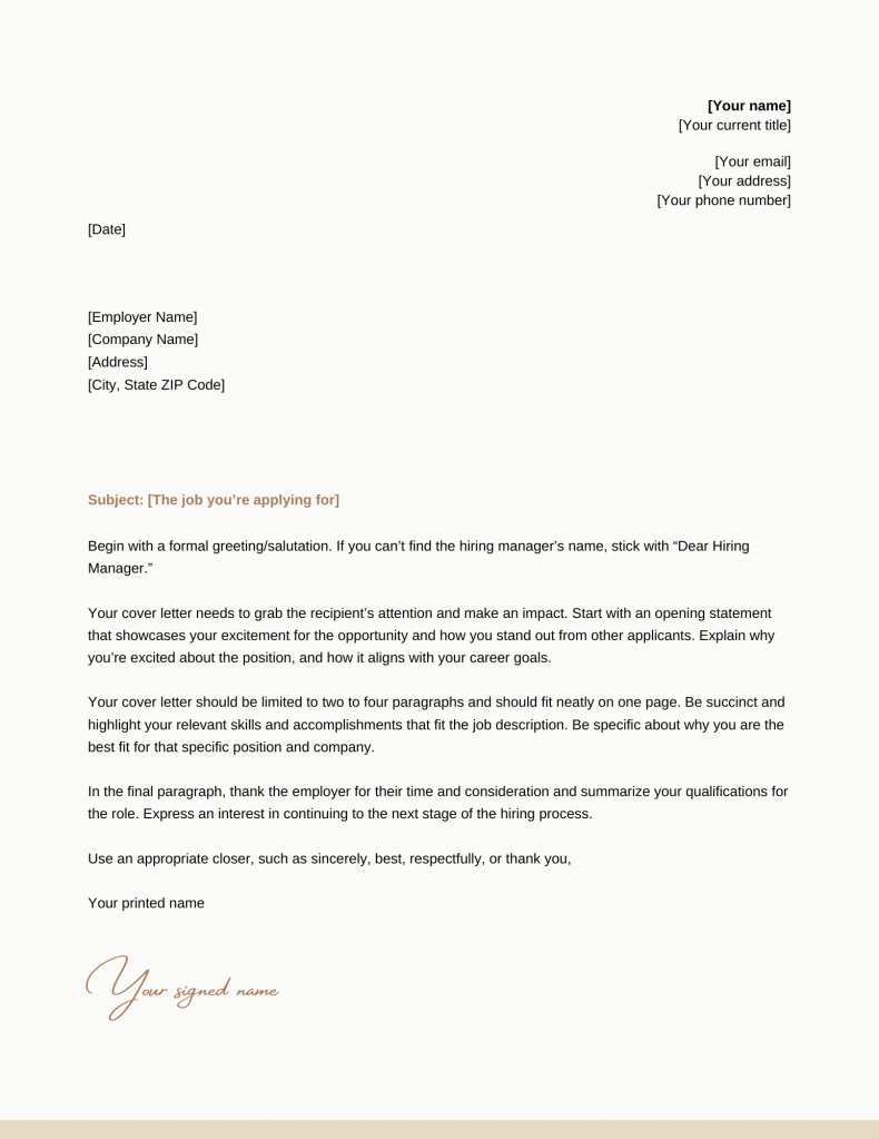 Some other considerations to keep in mind when writing your cover letter are the font. According to Indeed’s Jennifer Herrity, the font should be a basic one such as Arial, Calibri, or Verdana. 8 Now, you do want the employer to read your cover letter, and by that, I mean… don’t make it too simple: