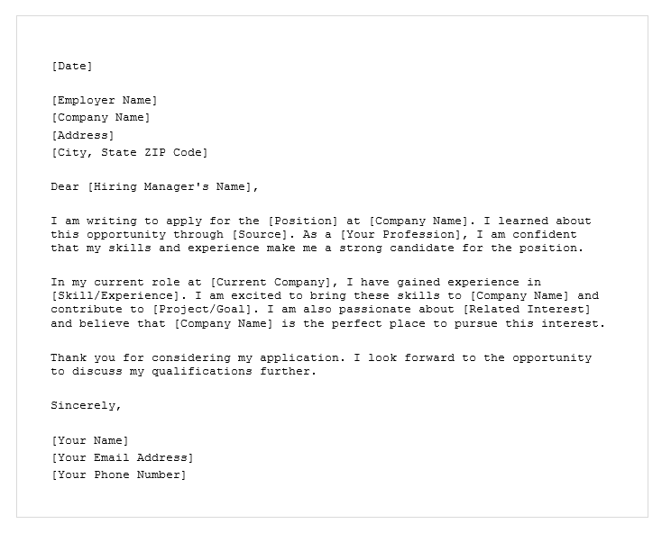 According to Grammarly, your cover letter should have one-inch margins on all sides, size 10–12 font, and 1.15 line spacing. 11