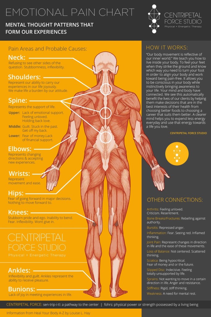 Probably. But this past year was particularly unpredictable for me. Ironically enough, I came across this emotional pain chart. *Oh, reader… you’re learning something new about me: I’m an alternative medicine fanatic.